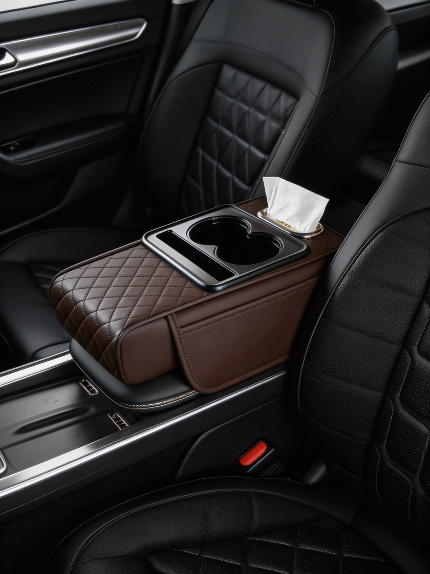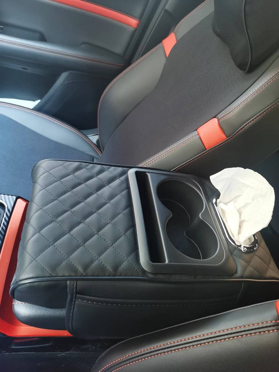Soft, quilted comfort for your arm meets smart storage for everything you touch every day. Your phone, tissues, and essentials are exactly where you need them—no reaching, no clutter, just effortless convenience that makes your drive feel more intentional.